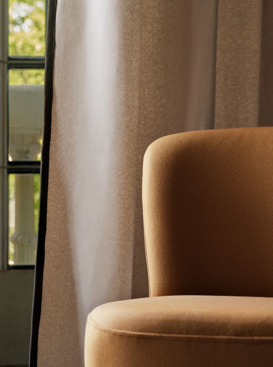 Highland es una lana virgen con una textura suave, noble y envolvente, perfecta tanto para cortina como para tapicería. Este tejido permite crear espacios confortables y elegantes, aportando un aspecto acogedor y una sensación de bienestar.