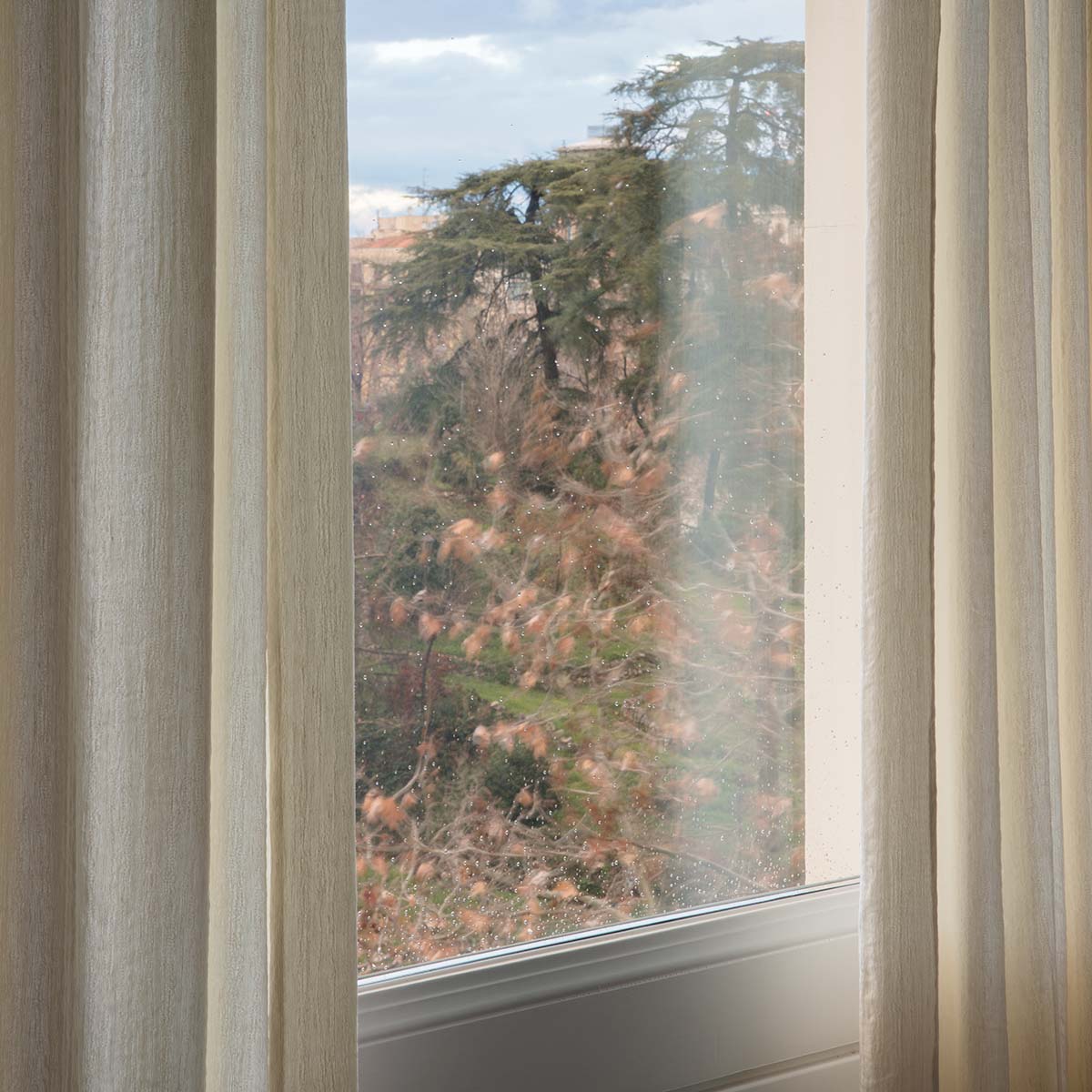 The delicacy of linen and the durability of cupro make this curtain fabric the most sophisticated reference in the collection. A jacquard with a subtle satin look and organic texture, available in six raw and natural shades with light dusty nuances.