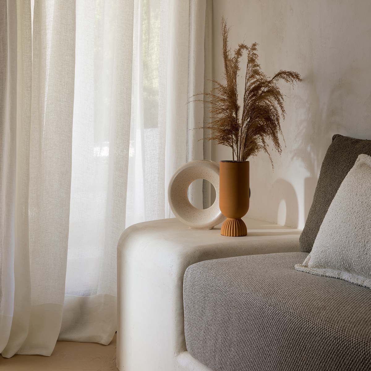 The marbled texture made of 100% linen transforms Moss into a natural and versatile fabric. Its lightness welcomes the passage of light through different shades of white, linen, taupes or greys.